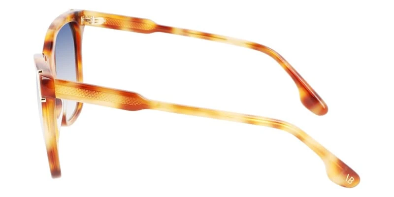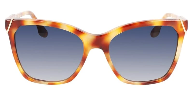 This cat eye Victoria Beckham sunglass comes in a amber tortoise frame with blue gradient lenses.