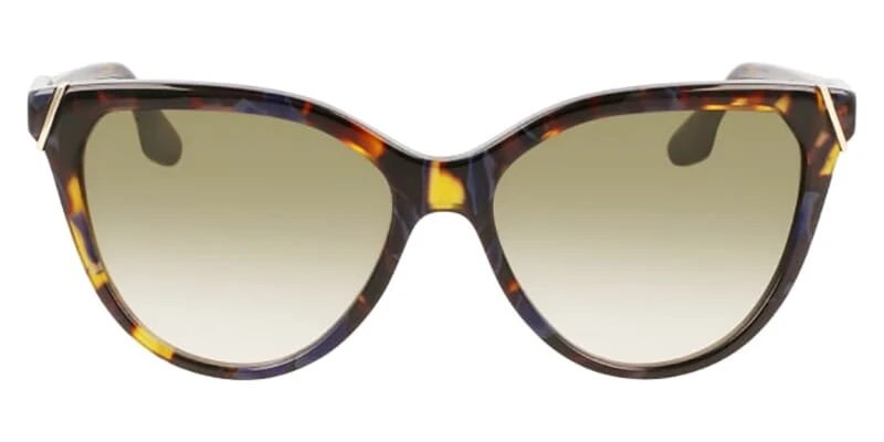 This cat eye Victoria Beckham sunglass comes in a havana and blue frame with brown gradient lenses.