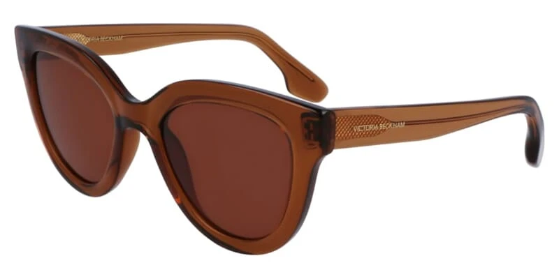 This cat eye Victoria Beckham sunglass comes in a caramel crystal frame with brown lenses.