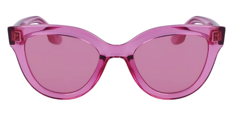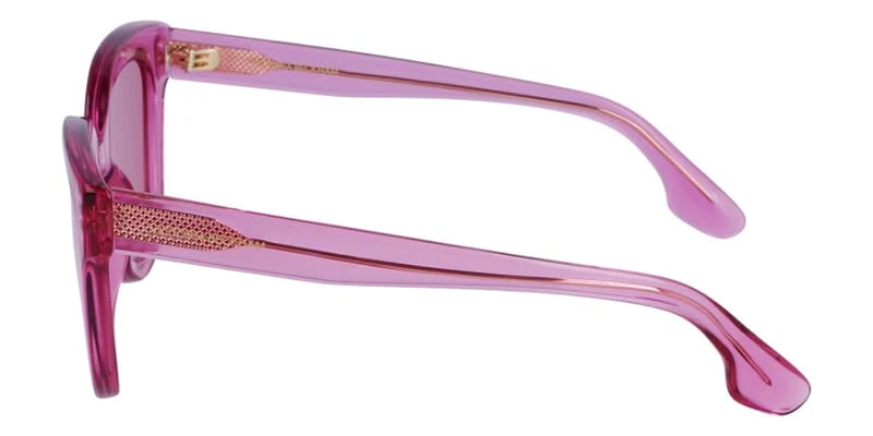This cat eye Victoria Beckham sunglass comes in a rose crystal frame with pink lenses.
