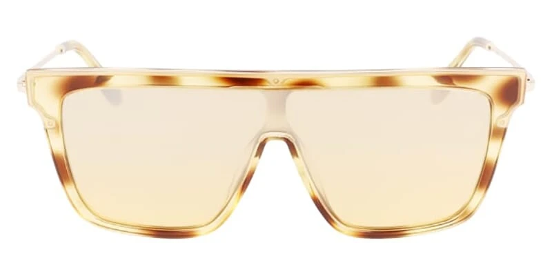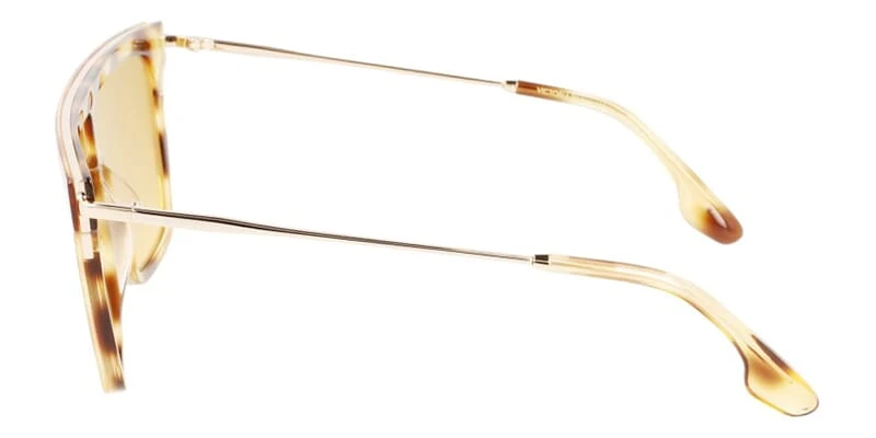 This square Victoria Beckham sunglass comes in a blonde havana with gold frame with brown gradient with light silver flash mirror lenses.