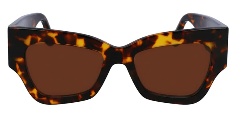 This square Victoria Beckham sunglass comes in a brown havana with gold frame with brown lenses.